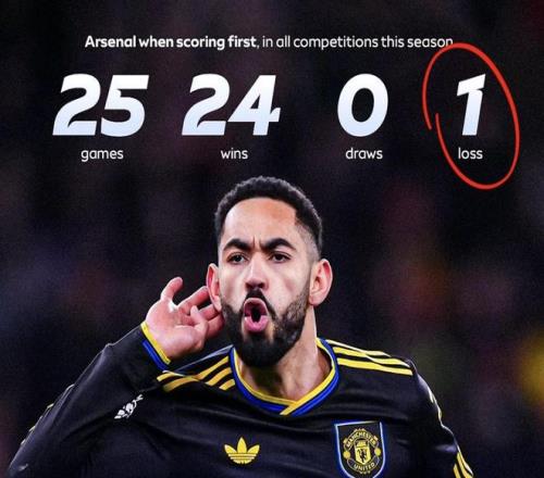 英超第23轮,阿森纳主场2-3不敌曼联,这是阿森纳本赛季英超首次在先进球的比赛中输球,此前24场全胜。